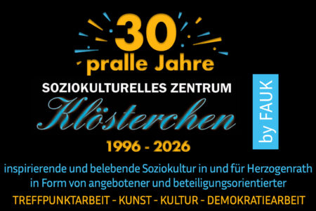 Das Soziokulturelle Zentrum Klösterchen in Herzogenrath entstand 1996 aus dem Engagement zahlreicher Bürger*innen, Gruppen und Initiativen, die ein frei gewordenes ehemaliges Klostergebäude als offenen Kultur- und Begegnungsort gestalten wollten. Der Förderverein Arbeit und Umwelt in der Region Aachen e.V., als heutiger Träger, entwickelte das Haus von Beginn an als soziokulturelles Zentrum: vielseitig, demokratisch organisiert und nah an den Lebensrealitäten der Menschen vor Ort.
